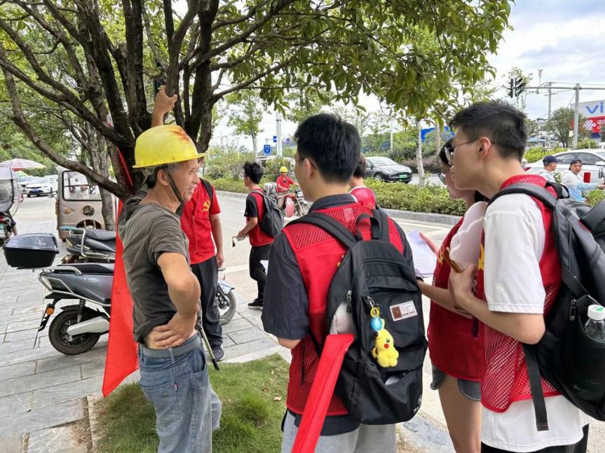 图为实践团队成员邀请广西师范大学学生进行普通话的趣味活动时的情景。