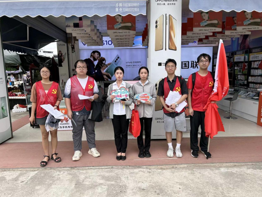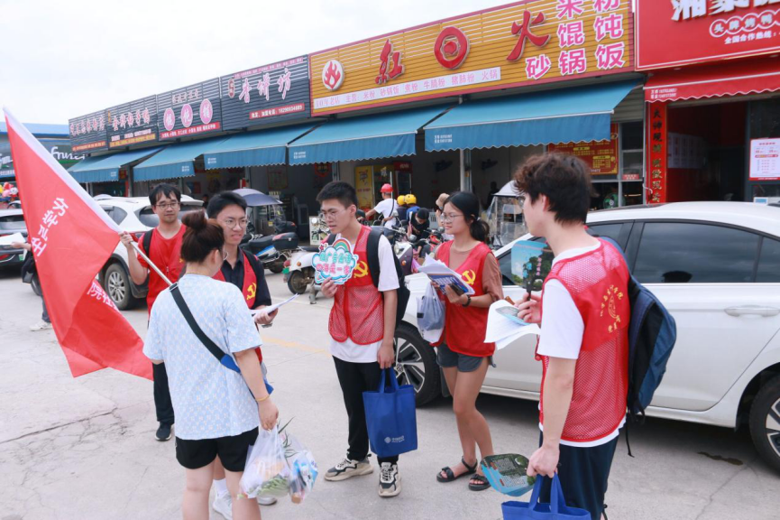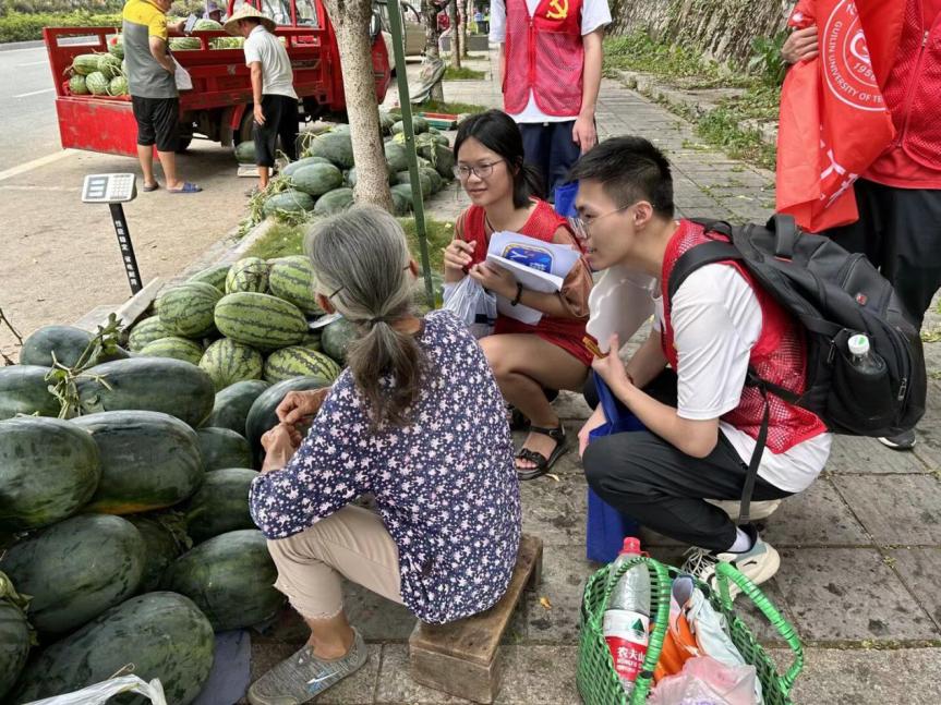 弘扬中华汉语文化社会实践团于7月9日在学校周边街道、农贸市场、桂林融创国际旅游度假区范围内开展了关于普通话使用情况调研的街访行动。实践团队成员通过问卷调查、分发宣传手册,以及实地调研走访的方式展开推普行动,积极向学校周边街道的各类人群进行访问,切实发挥推普助力在民心的积极导向作用。