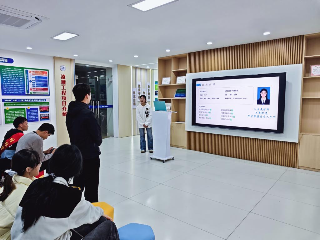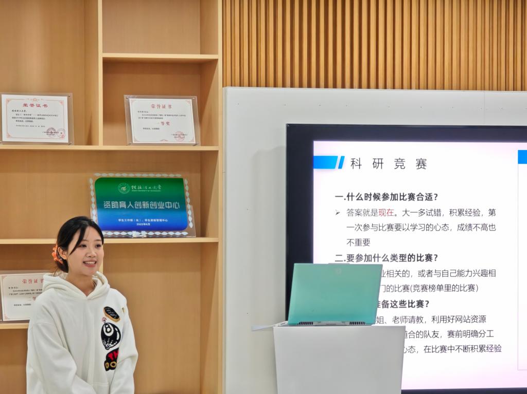在宣讲会上,2位优秀学生代表依次登台,聚焦学习心得、参加科创竞赛经历、考研等角度分享自己的成长感悟。虞莹同学以科研路上的迷茫与突破为切入点,为大家讲述了实验过程中的成长故事,鼓励同学们要敢于挑战困难;黄秋霞同学分享了自己的学习心得,特别介绍了如何制定学习规划和时间管理的方法,帮助大家厘清了早规划、早践行的个人成长思路。在互动环节中,他们还就大家感兴趣的科研入门、科创竞赛、考研等问题进行了细致解答,以“过来人”视角为学弟学妹拨开成长的“迷雾”。