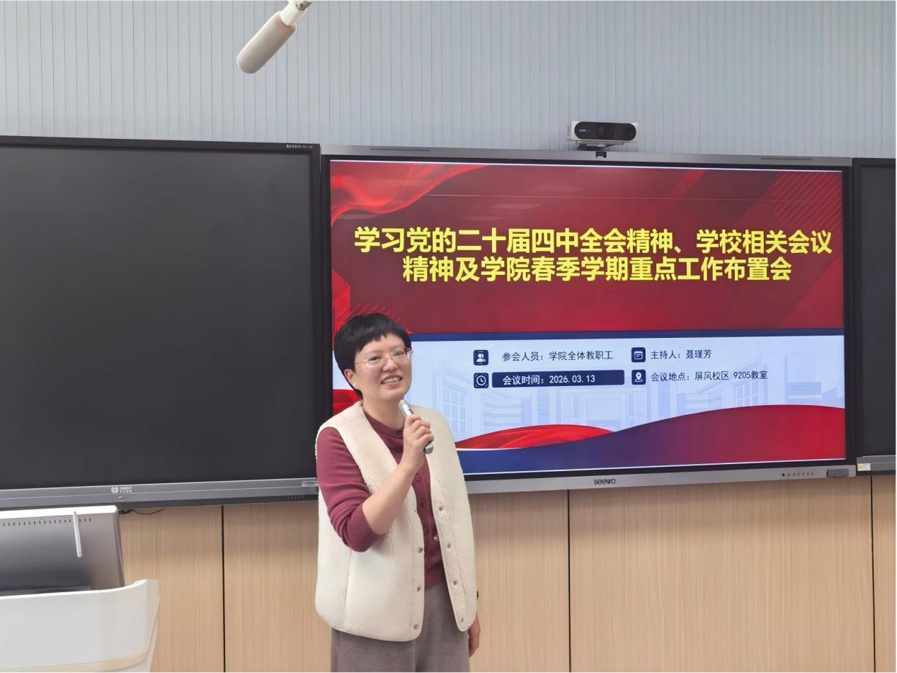 ”建设,全体教职工要筑牢思想防线,严守纪律底线,营造风清气正的育人环境。他特别开展了酒驾醉驾专项警示教育,通过以案说纪、以案说法,要求全体教职工深刻汲取教训,切实维护教师队伍的良好形象。在部署毕业生就业工作时,他指出,2026届毕业生就业形势依然严峻,要全面落实“全员促就业”工作机制,全体教职工要主动关心学生就业动态,积极拓展就业渠道,加强对毕业生的分类指导和精准帮扶,特别是要做好考研学生的复试指导和心理疏导,举全院之力助推毕业生更充分、更高质量就业。
