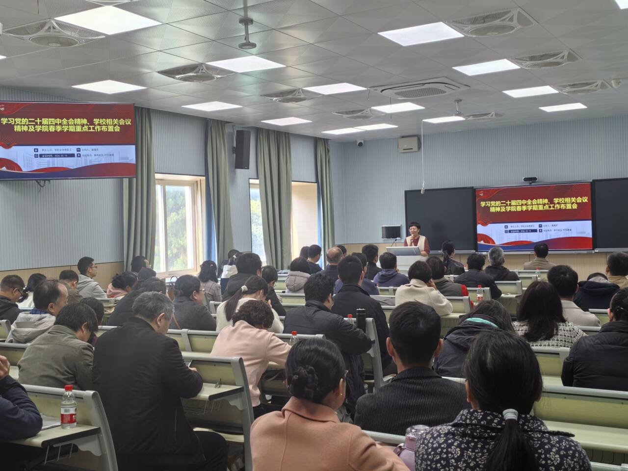 院长聂瑾芳组织学习了党的二十届四中全会精神。她指出,全院上下要将学习贯彻全会精神同落实学校第四次党代会精神紧密结合起来,同学校“十五五”发展的谋篇布局深度衔接,同新学期各项工作的开篇起步一体推进,切实把学习成效转化为强党性、铸忠诚、抓落实、促发展的具体实践。随后,她传达了学校近期召开的春季学期工作会议及相关专题会议精神,强调要紧紧围绕学校确定的年度目标任务,主动担当,积极作为。在部署免费色情影片